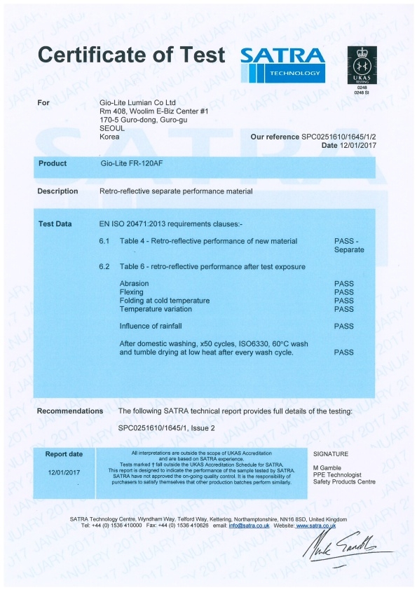EN ISO 20471 인증 [FR-120AF]