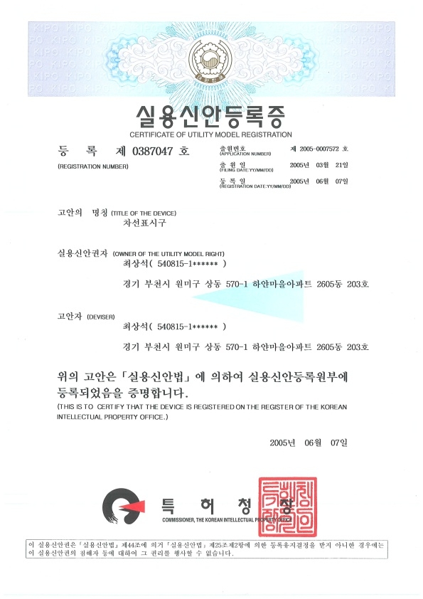 실용 신안 [제 20-0455053호]