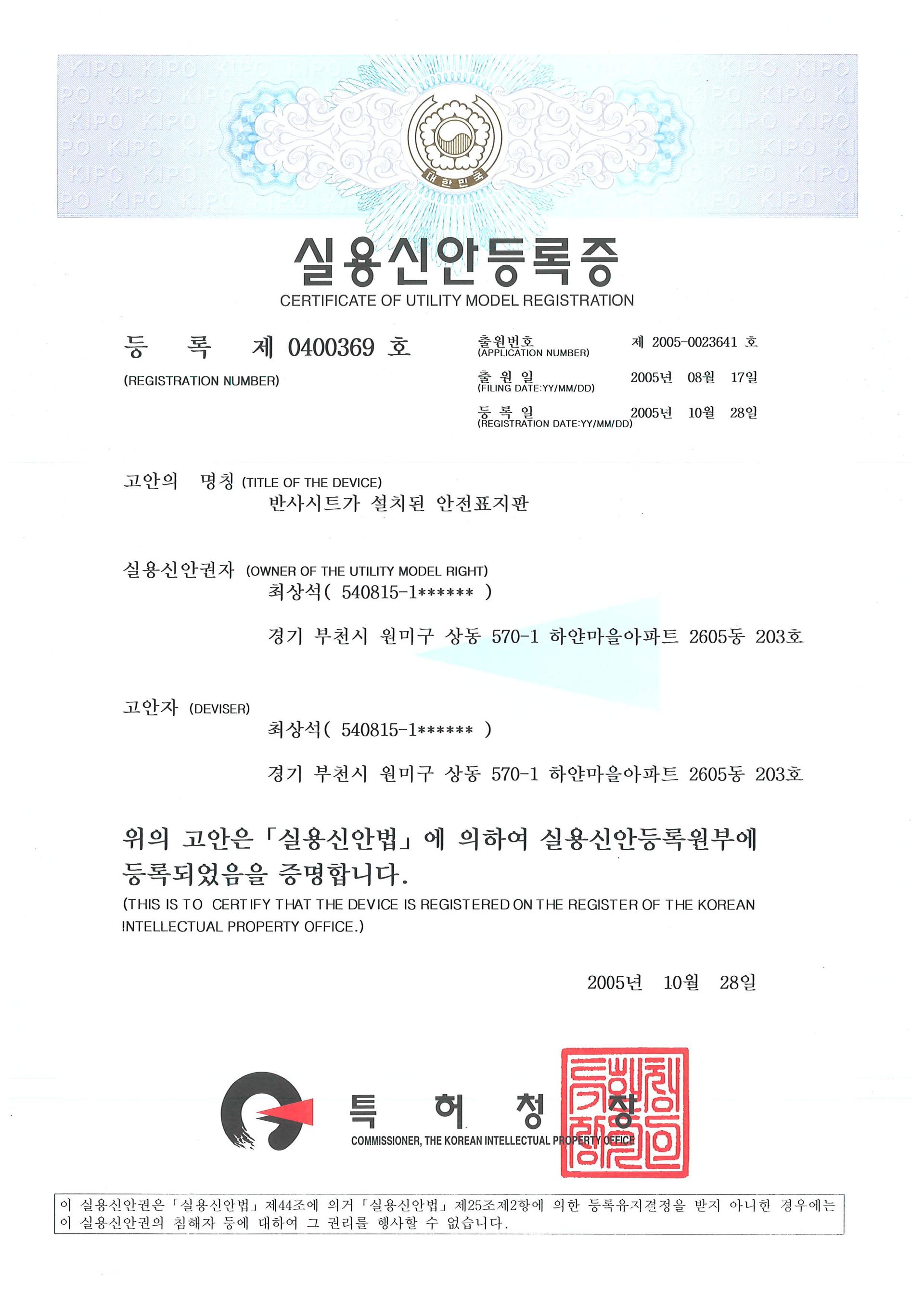 실용 신안 [제 0400369호]