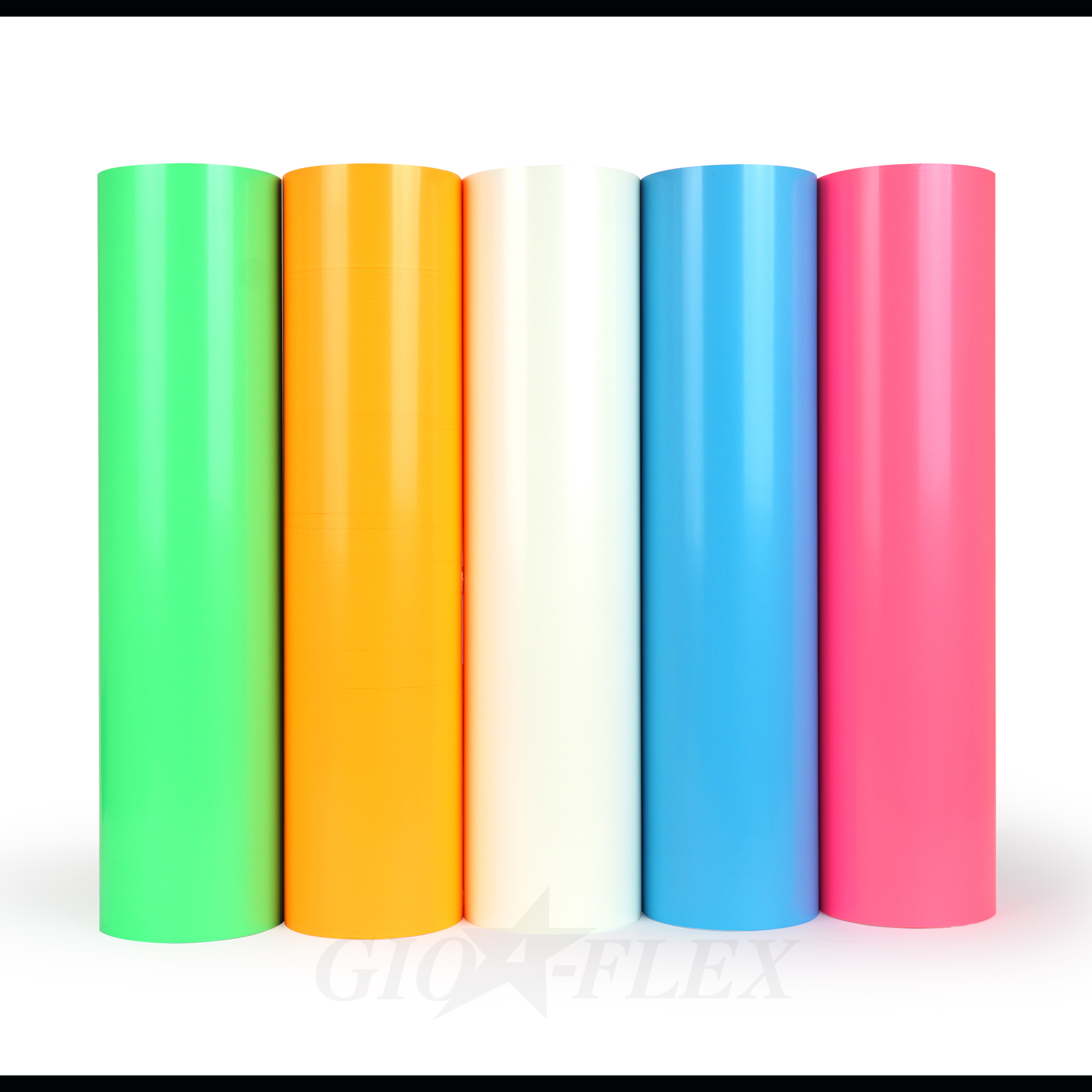 총 6가지 컬러로 구성되어 있어 다양한 디자인 연출이 가능하며, GIO-FLEX GLOW는 실용성과 시각적 효과를 동시에 만족시키는 야광 열전사 필름으로, 다양한 의류 및 디자인에 독특하고 실용적인 포인트를 더해줍니다.