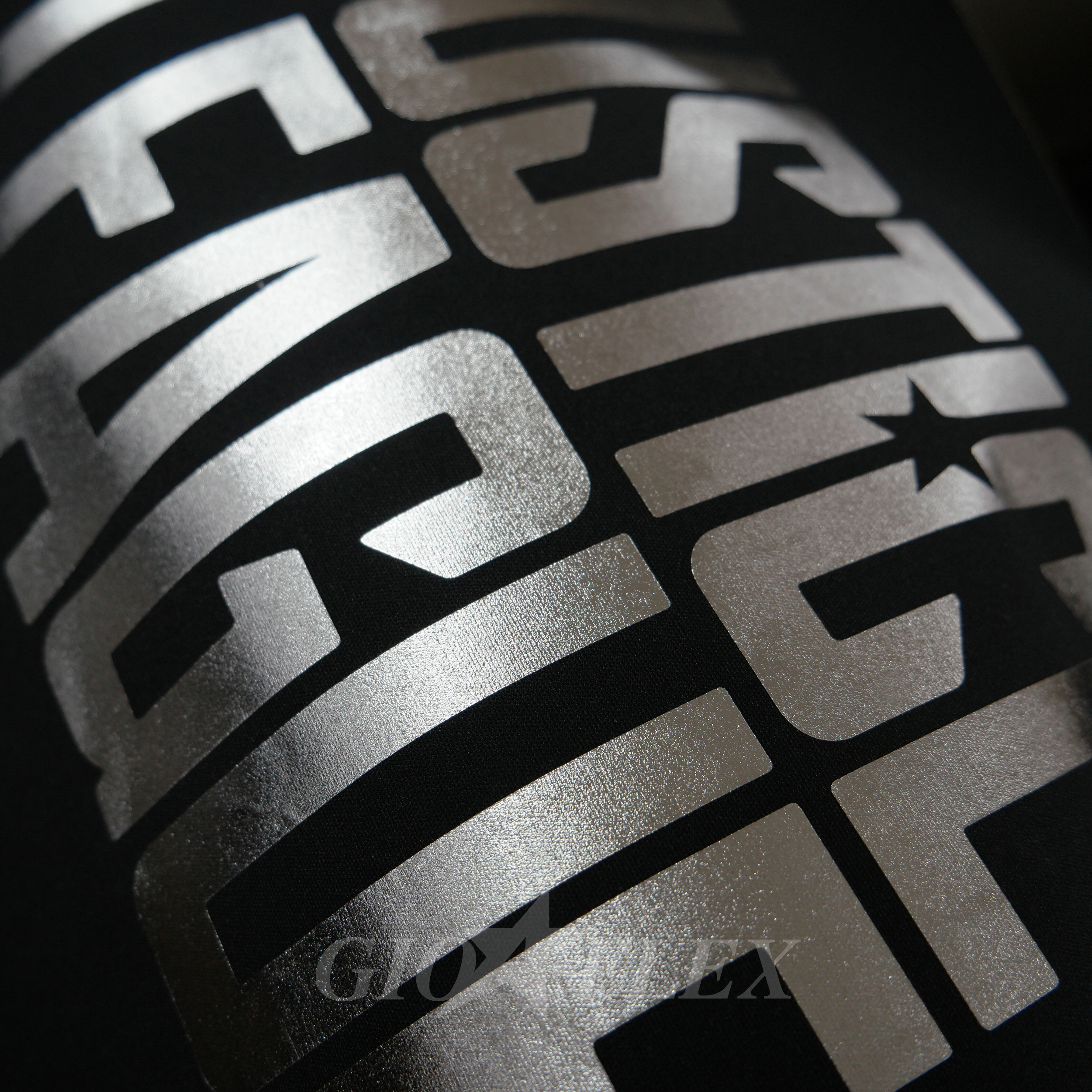 기본 필름은 매우 반짝이는 유광 메탈릭 표면을 가지고 있으며, 열전사 시 1회 프레싱으로는 고광택의 메탈릭 질감을 표현할 수 있고, 2회 프레싱을 통해서는 실제 금속에 가까운 리얼한 메탈릭 텍스처로 커스터마이징이 가능합니다.