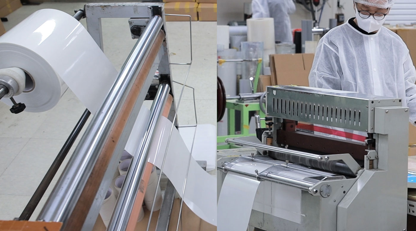 GIOLITE's Guro Factory 2 is a comprehensive garment accessory processing facility. It houses nearly every type of equipment required for accessory production, including high-frequency welders, die-cutters, hot press machines and various roll and fabric cutter systems.
